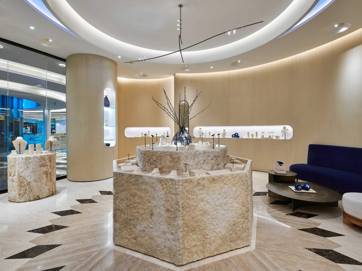 Nakkash Design Studio’s project, Magpie, a jewellery store in Qatar, draws inspiration from a bird’s nest. This unique design narrative provides a distinctive backdrop to the displayed pieces and offers customers an engaging shopping journey. The innovative design not only showcases the jewellery but also embeds a sense of intrigue and exploration within the retail experience.